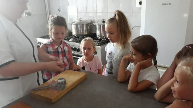 O tym, że gotowanie może być świetną zabawą przekonały się w czwartek Starszaki. Z okazji organizowanego tego dnia „Dnia Małego Kucharza” mieli oni okazję pomóc ciociom kucharkom w przygotowaniu obiadu. Przed zajęciami kuchennymi wszyscy przypomnieliśmy sobie o zasadach higieny i bezpieczeństwa w kuchni, by następnie z entuzjazmem przystąpić do pracy. W kuchni panowała wspaniała atmosfera. Gotowanie zamieniło się w doskonałą zabawę. Pod okiem cioć przedszkolaki wyczarowały „kulinarne arcydzieła”, które wszyscy mieli okazję skosztować w trakcie obiadu.